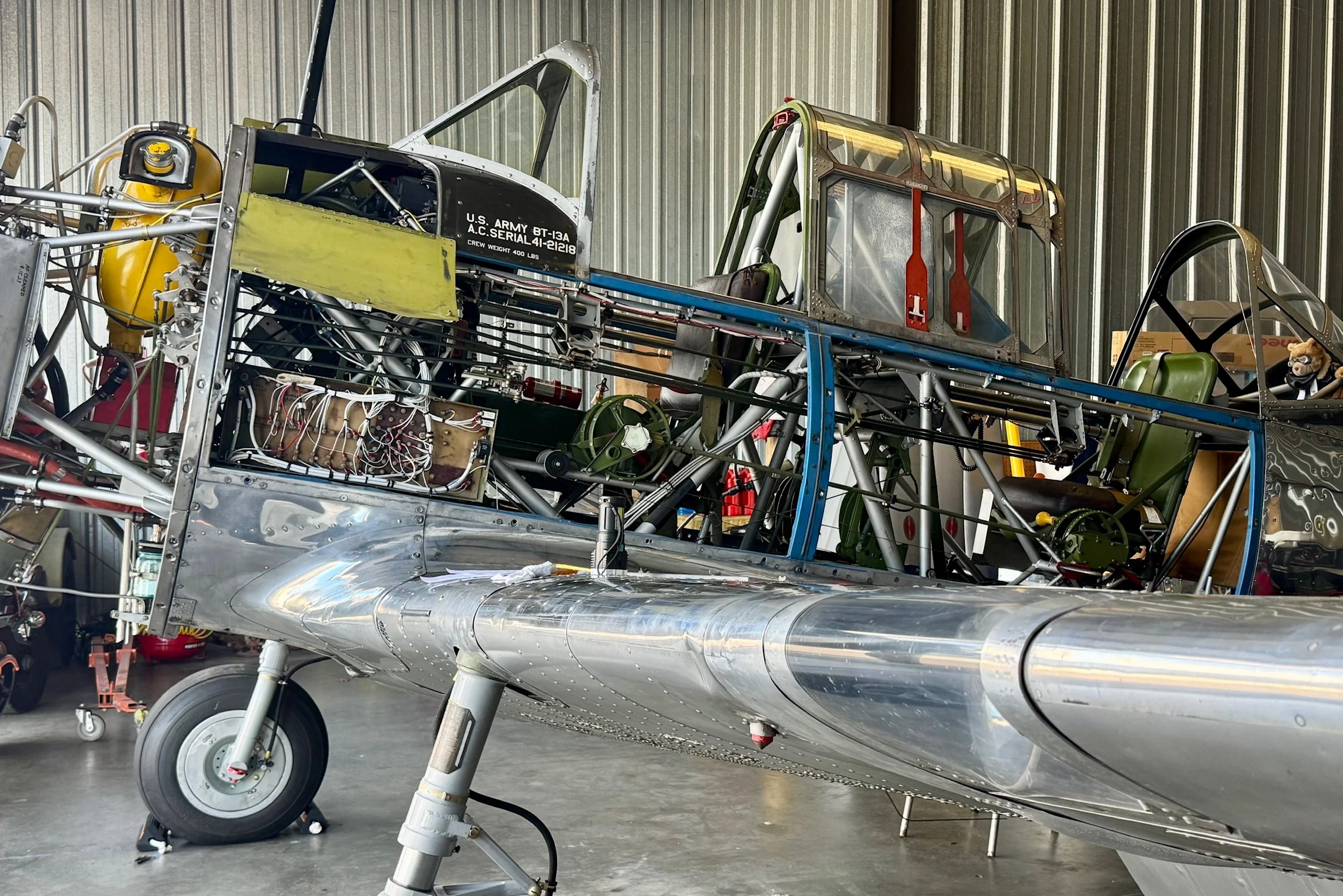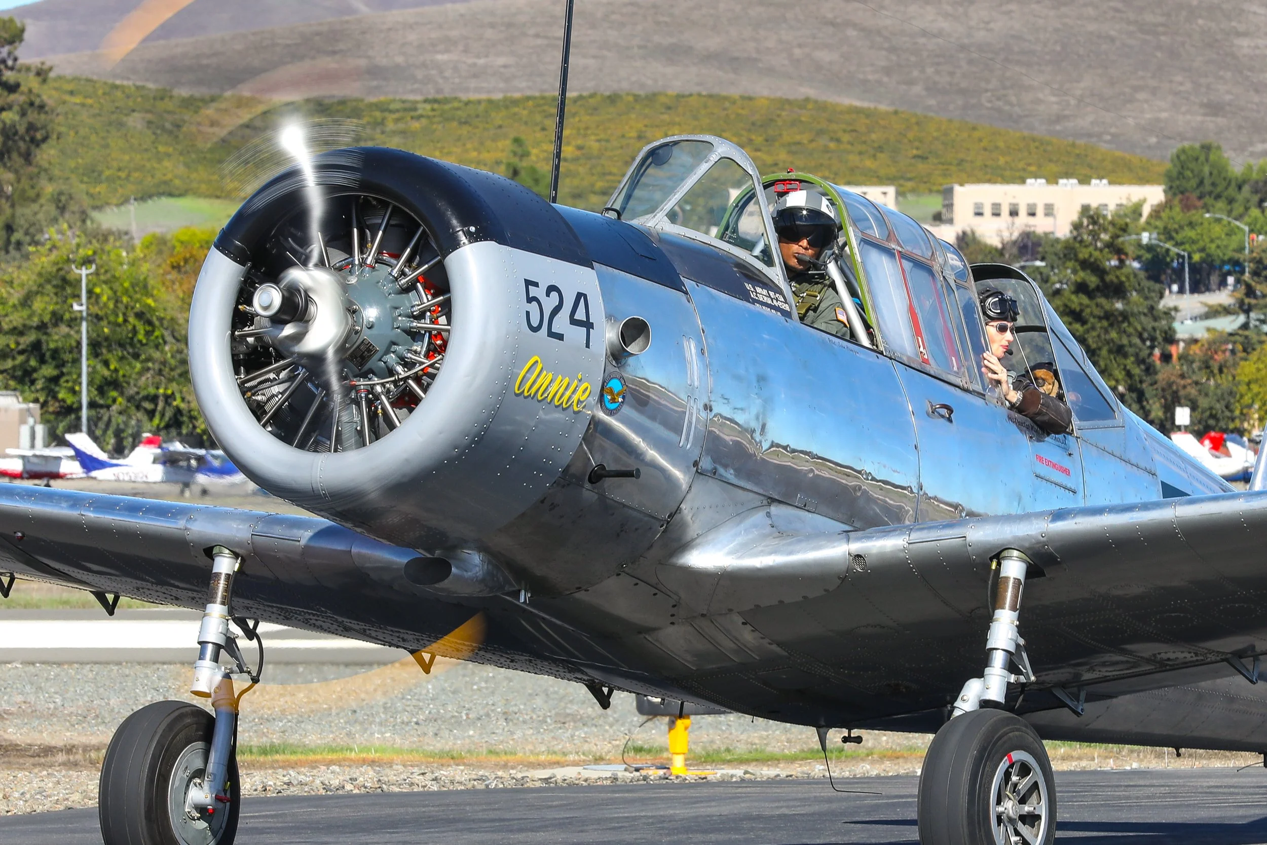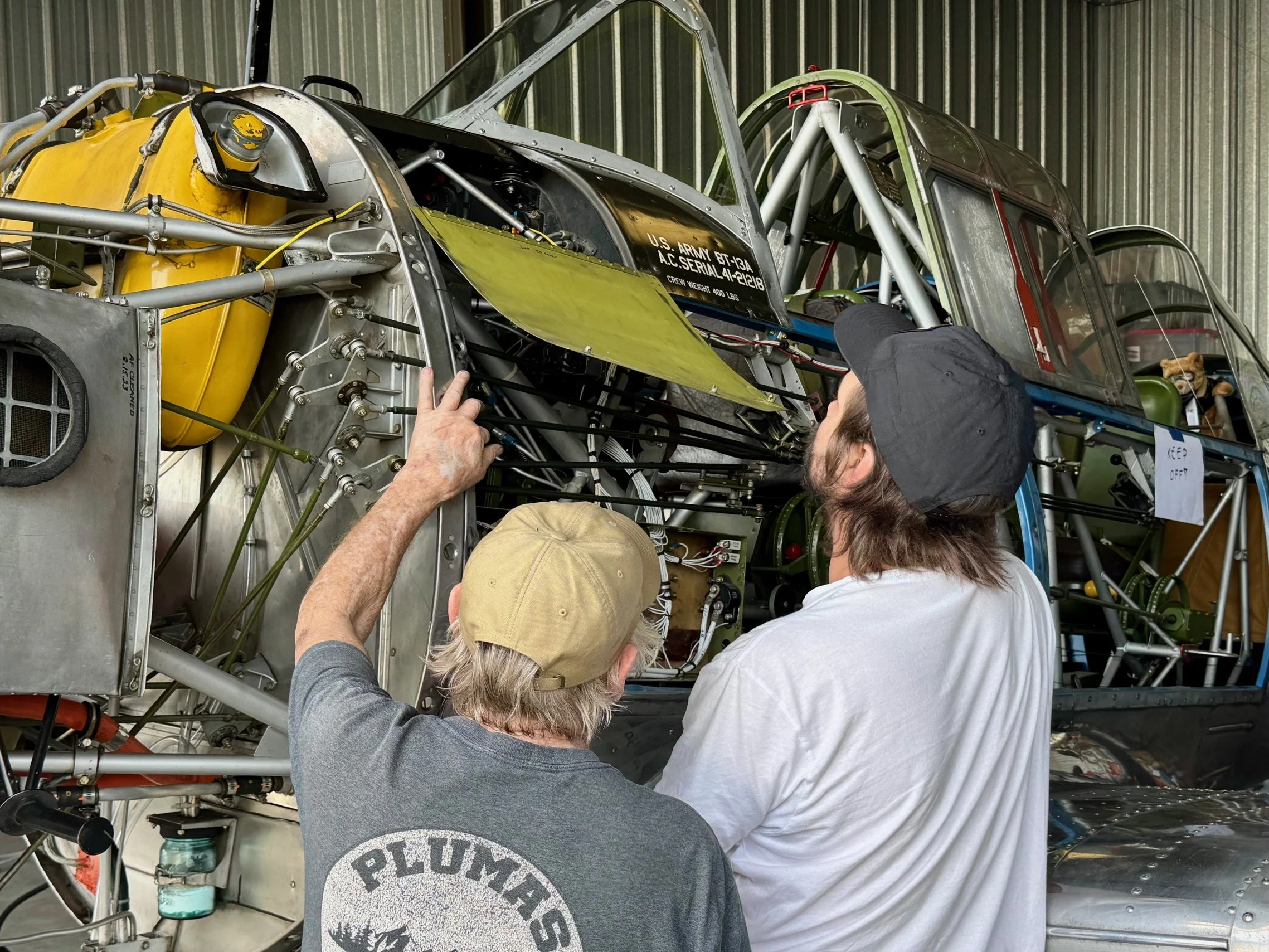 Greg Gibson of Props & Gears has created a collection of merchandiset celebrating Annie and all other BT-13s around the world. All set an actual image of ol’ 59842 against a weathered American flag, and includes the Vultee Aircraft logo. Additionally, it highlights our partnership with the Association of Professional Warbird Operators, whom we are eternally grateful for their support during this restoration. Please visit the page here for your Annie themed merch